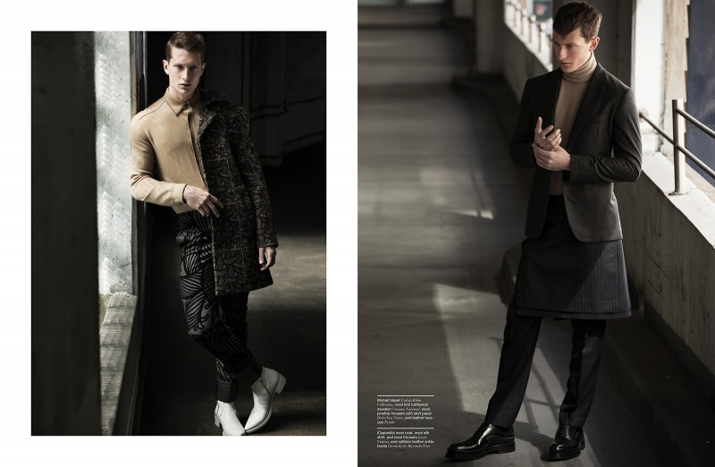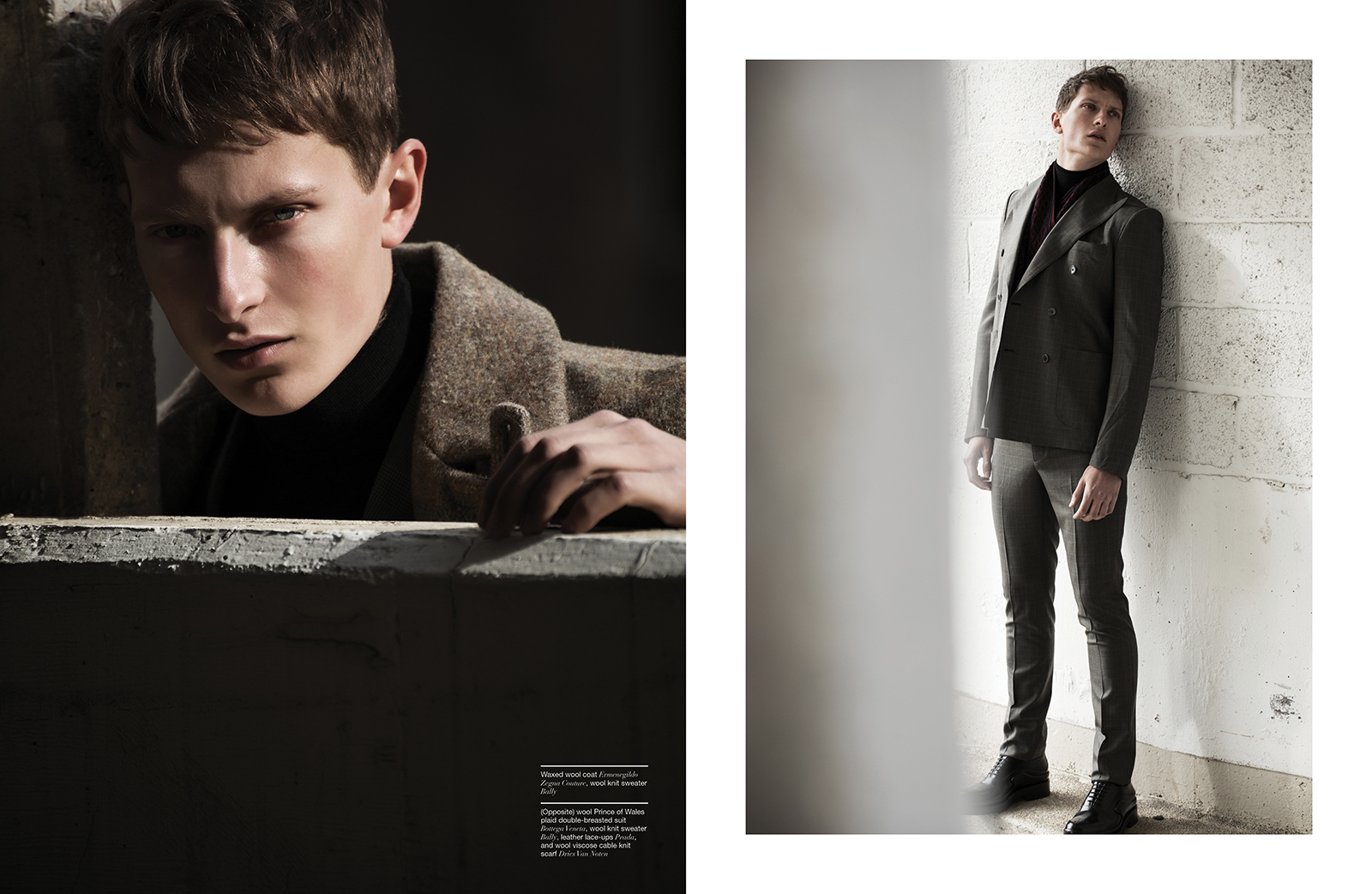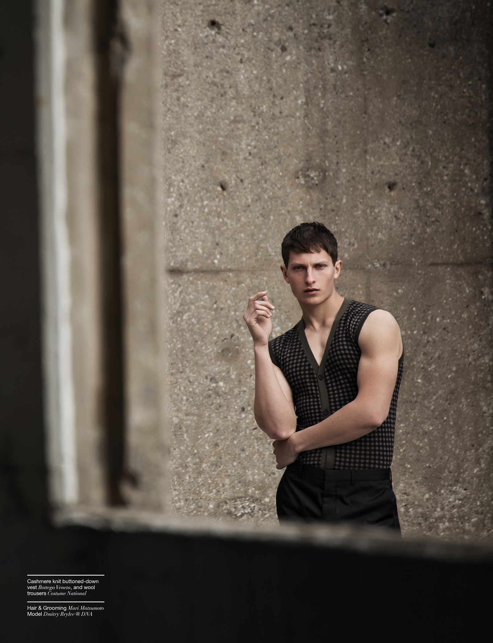 Dmitry Brylev bundles up for fall in sophisticated menswear pieces for a new story from the September 2015 issue of Manifesto. Reconnecting with photographer Brent Chua, Dmitry heads outdoors in a covetable wardrobe. Styled by Eric McNeal with direction by Jonathan Yee, Dmitry is pictured in choice menswear from brands that include Ermenegildo Zegna Couture, Bottega Veneta and Prada.