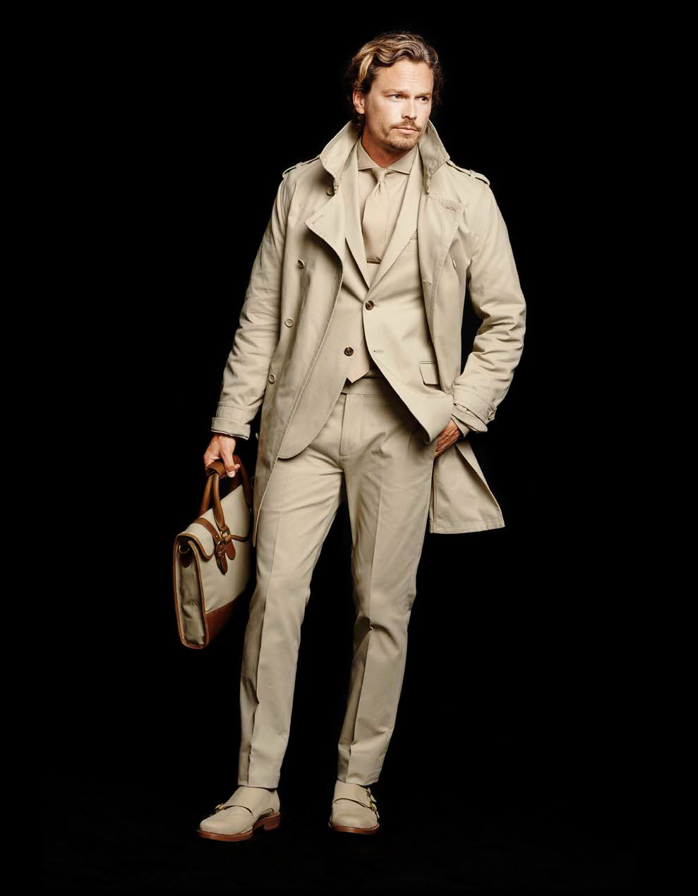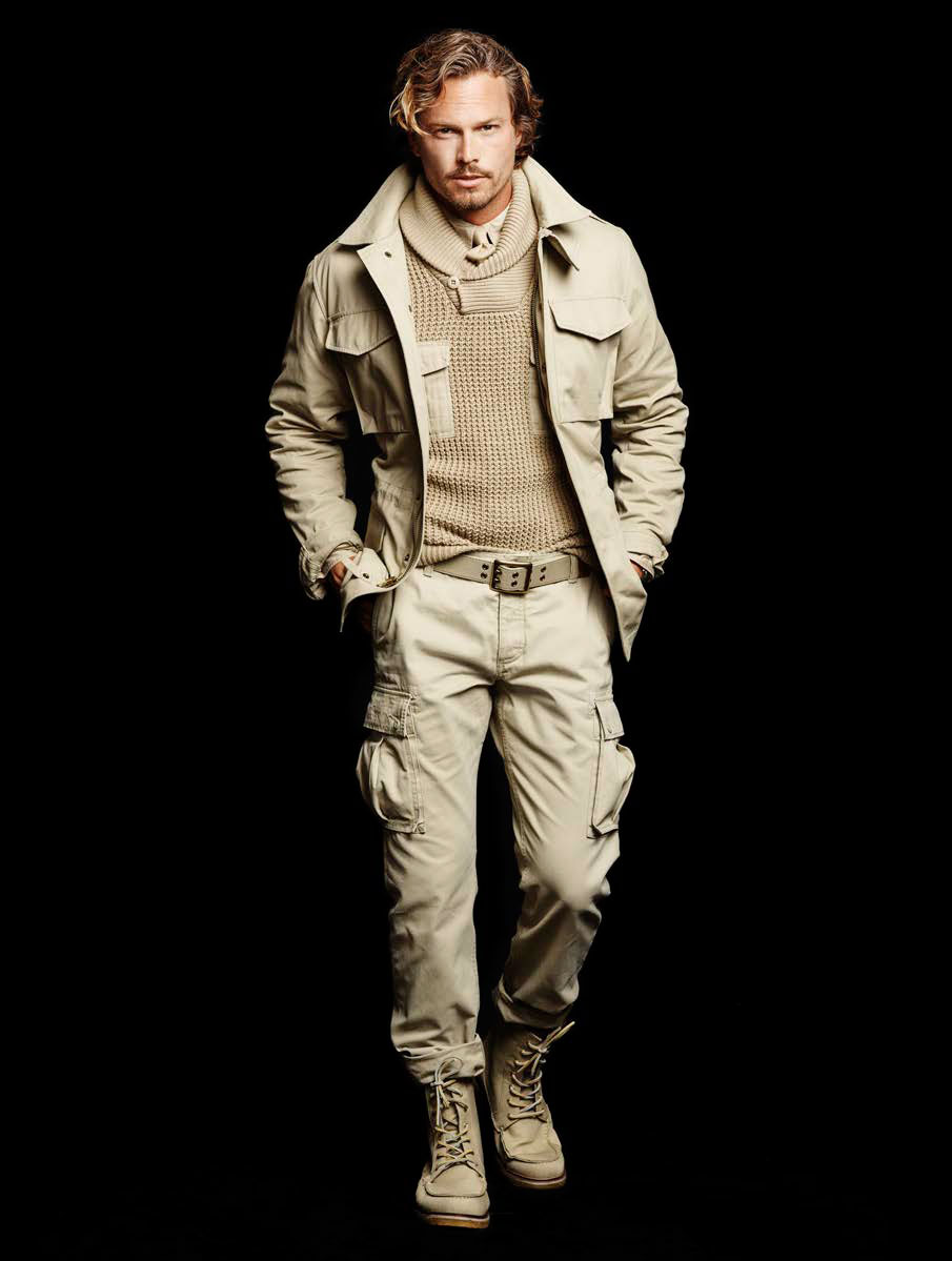 Founded in 1986, Dockers prepares to celebrate its 30 year anniversary by celebrating one of its signatures–khaki. Embracing 100% khaki cloth, Dockers sets out to dress the season in the iconic neutral. Channeling safari and military-style themes, the brand unveils a selection of countless must-haves that range from the trench coat and suiting to the cableknit sweater.