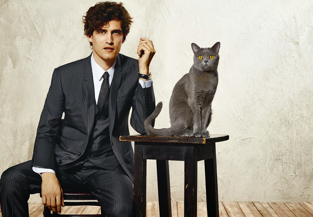 Dolce & Gabbana Summer 2014–Dolce & Gabbana designed its current collection with a nonstop line of sharp suits, dapper wingtip shoes and some fine felines in the mix. Models such as Stuart Jones, Oliver Cheshire, Danny Beauchamp, Nick Tan and Elbio Bonsaglio suited up for the collection lookbook to define what the Italian fashion house designed as the modern, chic man who wears a suit like a second skin. Plus, what’s better than a few high-fashion models playing with cats?