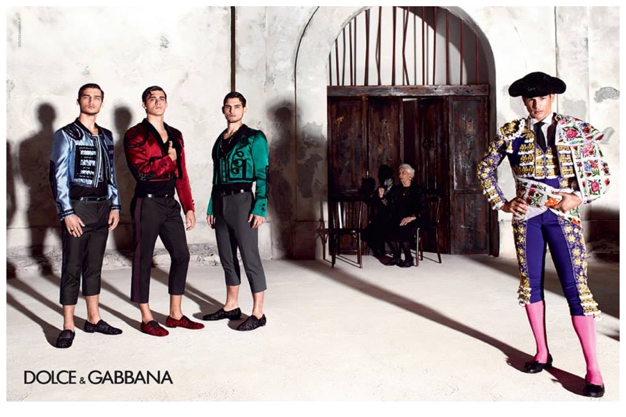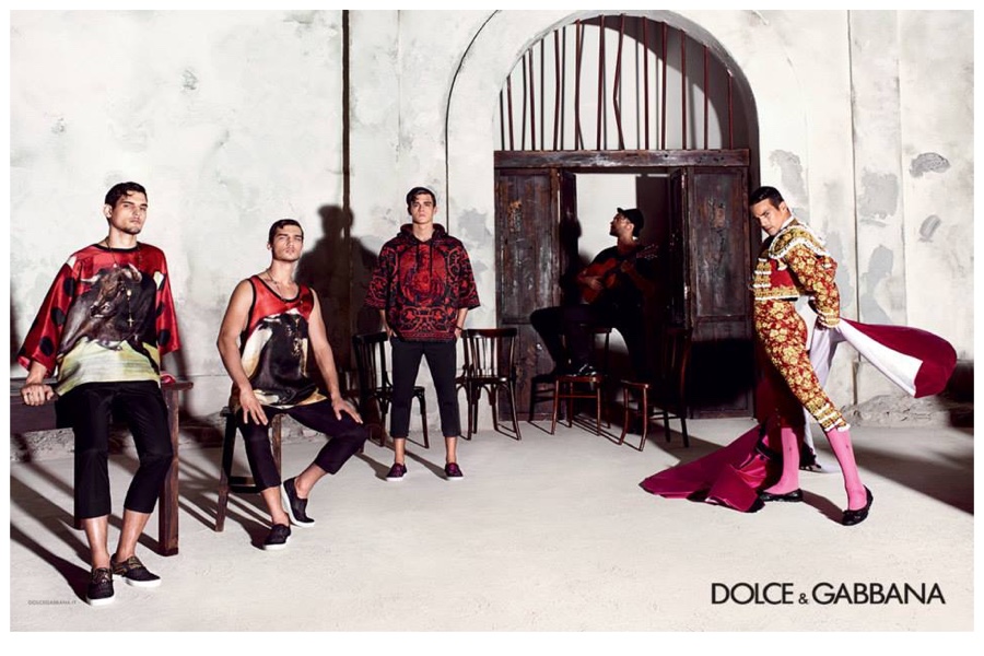 Dolce & Gabbana Spring/Summer 2015 Campaign-Dolce & Gabbana unveils its spring-summer 2015 advertising campaign, with Domenico Dolce acting as photographer once more and Stefano Gabbana as artistic director. Expanding on the inspirations of their spring collection, Dolce and Gabbana blend Sicilian traditions with inspirations that come from Spanish culture. At the center of the scene is the matador with bright, opulent jackets featuring intricate prints. The bold statement pieces work hand in hand with strong Italian tailoring and a dapper spirit. The campaign’s stars include 28 year-old Spanish bullfighter José Mari Manzanares as well as models Travis Cannata, Xavier Serrano and Misa Patinszki. / Hair by Oribe Canales. Makeup by Pat McGrath.