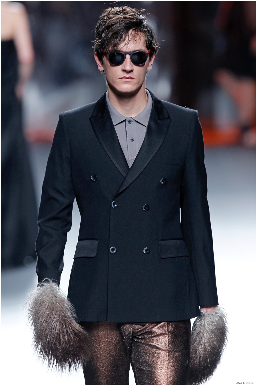 Unveiling her latest collection during Madrid Fashion Week, designer Ana Locking delivered another rich outing. For her fall 2015 lineup, Locking was inspired by the idea of the doppelgänger. This translated into an idea of opulence of dualities. Double-faced fabrics were married with furs for a regal outing, bursting with color. Slim, dapper three-button suits were paired against metallic separates with a modern edge, oversized furs with a glamorous attitude and intricate prints.