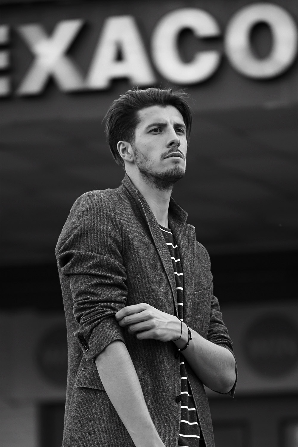 Near Candid-Photographer Jan Malinowski shares a new photo series featuring Flag Models Brussels’ Douglas Bailly. Captured on a relaxed day out, Douglas is comfortable in a stylish blazer, striped tee, skinny pair of ripped jeans and boots. Also wearing a black v-neck and an old pair of Vans, the model poses for near candid black & white images.