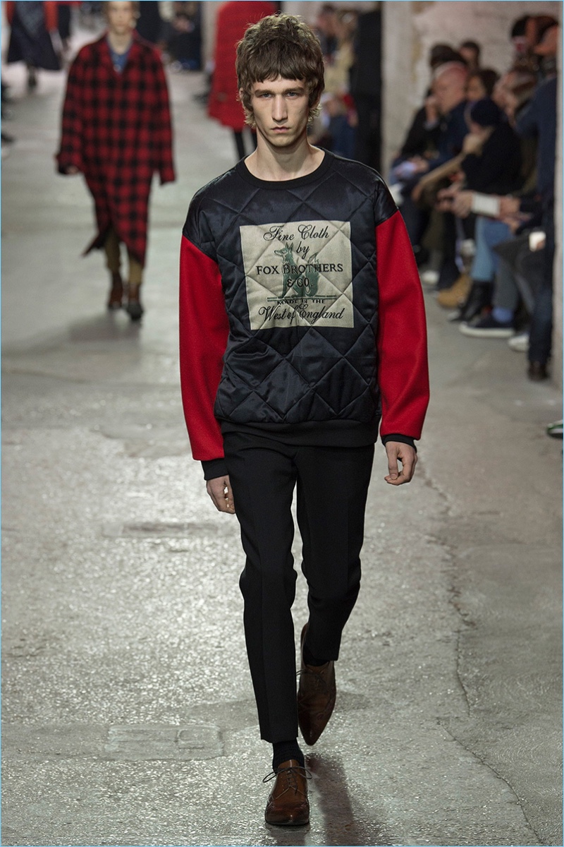 Making a case for relaxed silhouettes, the season continues with slouchy denim jeans, voluminous knits and leisure shirting. Tackling a penchant for the outdoors, buffalo check pants, quilted tops, and patterned sweaters also contribute to the strong collection. Not missing an opportunity to show a decadent hand, floral embellishments dress up basics for a grand finale.