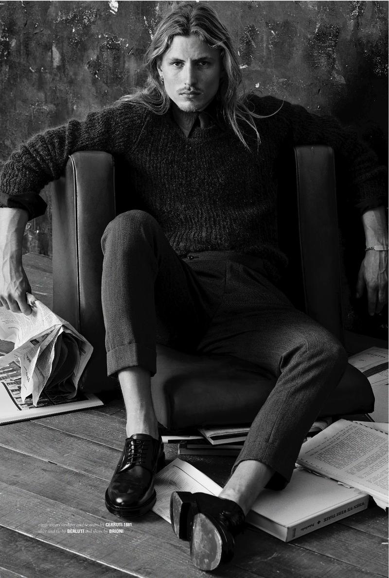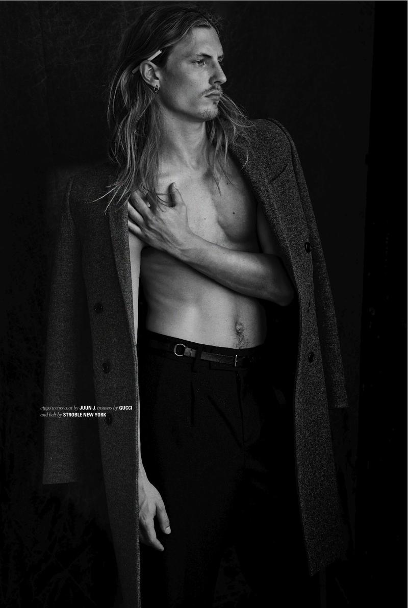 PinNico shoots model up and comer Victor Chitanu in relaxed dark fall fashions, offset against white undergarments.