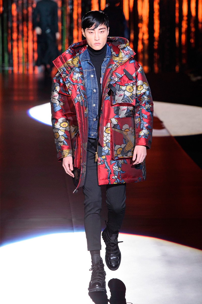 PinA geisha print provides a charming pattern for oversized silk outerwear, which was featured heavily in Dsquared2’s fall-winter 2016 men’s collection.