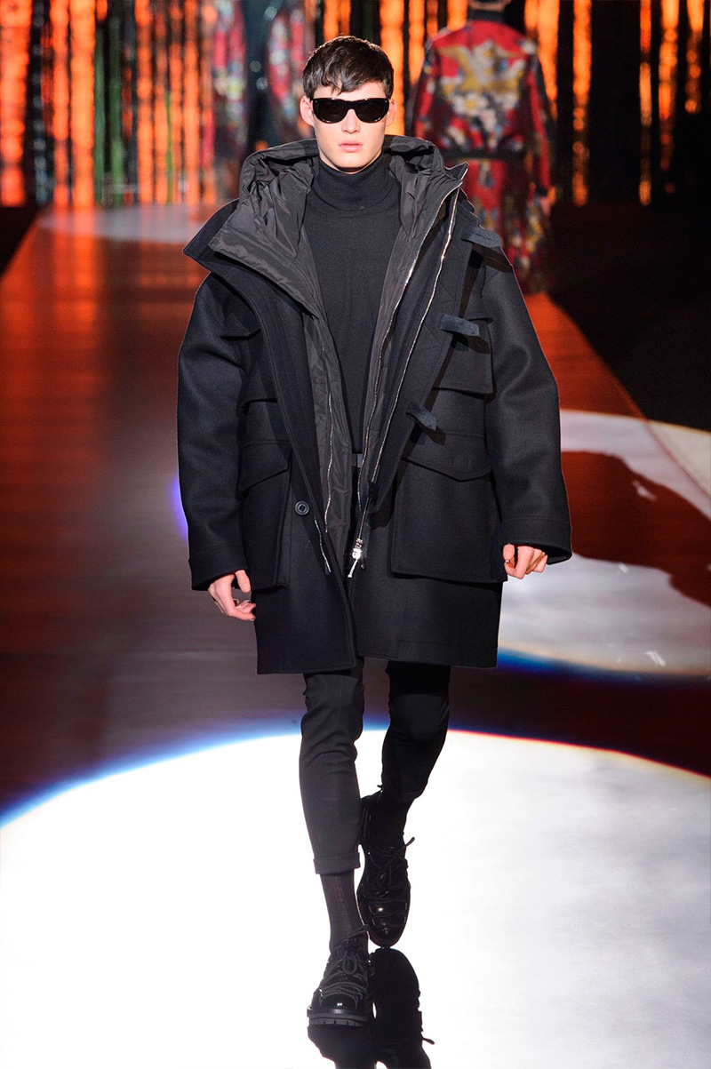 On the heels of celebrating its twentieth anniversary, Dsquared2 turned to Japan for the inspiration of its fall-winter 2016 men’s collection. Presented during the final day of Milan Fashion Week, designers Dan and Dean Caten remixed their boyish essentials with a fashion-forward trip east.