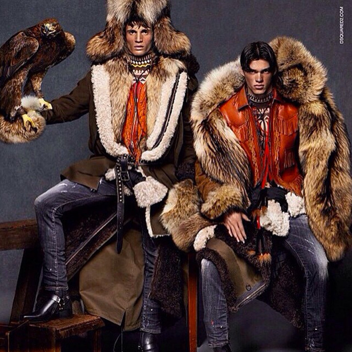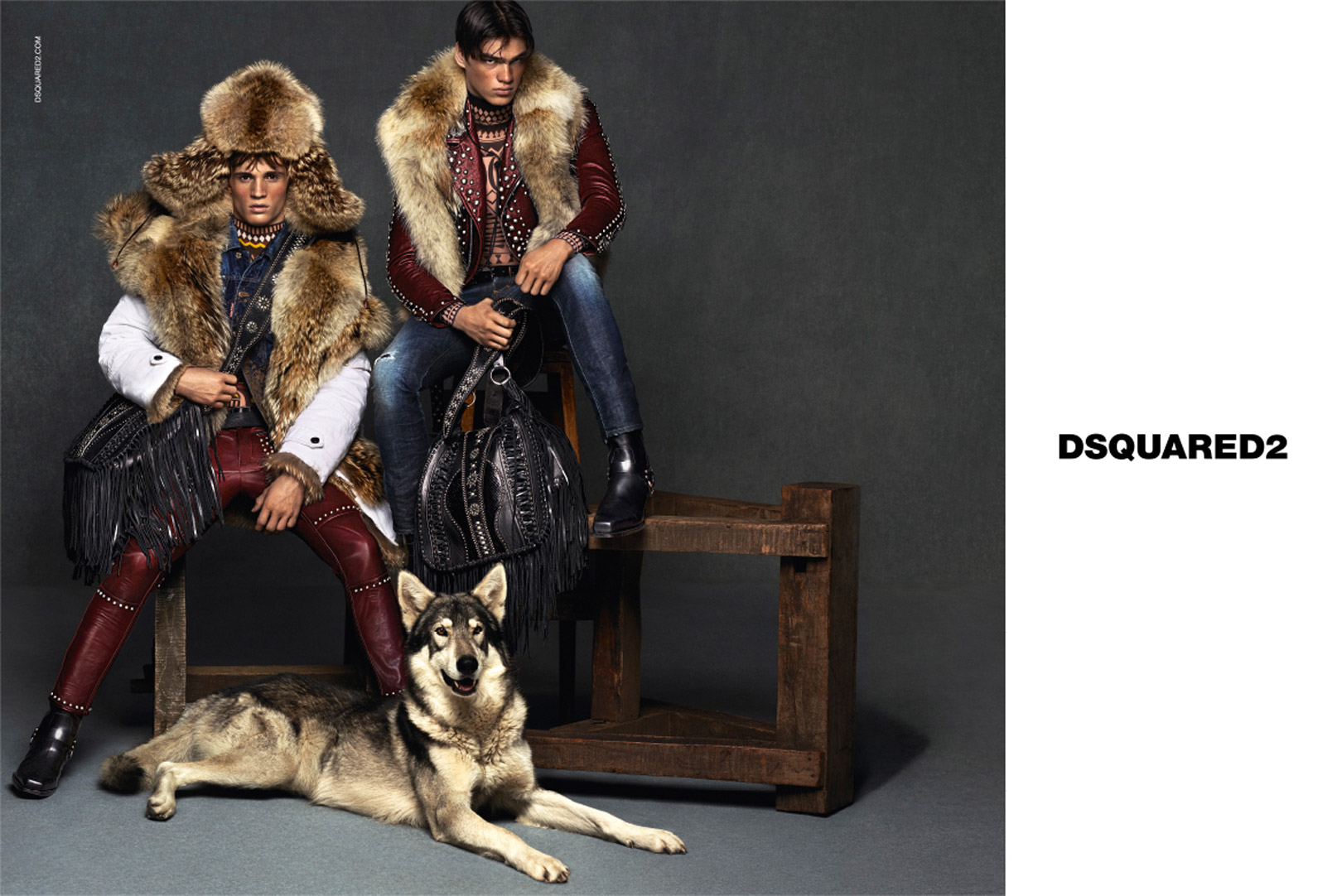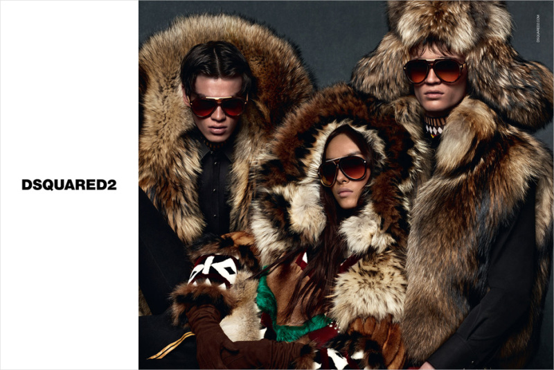Dsquared2 celebrates its flashy style with a fur-clad image for its new fall-winter 2015 advertising campaign. Notable fashion photographers Mert & Marcus reunite with model Filip Hrivnak for the advertisement, after shooting him for Givenchy’s fall 2015 campaign. Posing in-studio, Filip is joined by model newcomer Julian Schneyder, who makes a strong first impression in shearling, fur and denim.