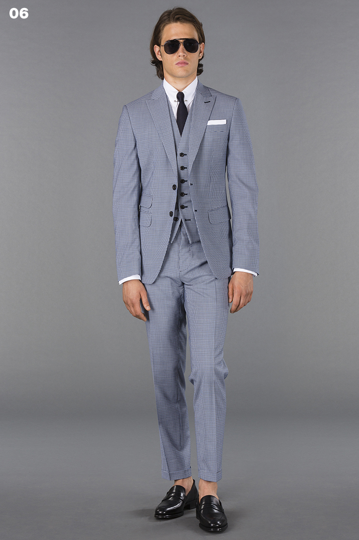 While Dsquared2 is known for its youthful campy fashions, the label which is helmed by Dan and Dean Caten, also knows how to serve up a sharp suit or two. Approaching spring with its Classic Collection, Dsquared2 places the spotlight on the trim modern suit.