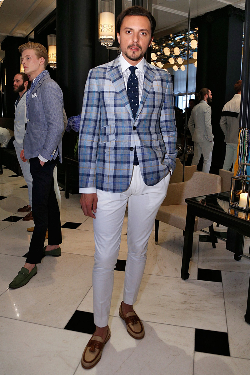 Duchamp Spring/Summer 2015–Filled with sharp 3-piece suits, club collars and even a couple of insanely cool tuxedos, Duchamp’s spring/summer 2015 collection is setting the standard on suiting for men. Every look fits to a T, which makes the suits shine. But what stands out most about this collection is the attention to detail: the contrasting colors in the waistcoats and shoes, the mixing of prints and, most of all, those sleek pocket squares that add a pop to the placket. We guarantee you’ll be dreaming about these suits–and probably wearing them–for years to come. Check out the rest of the looks below.