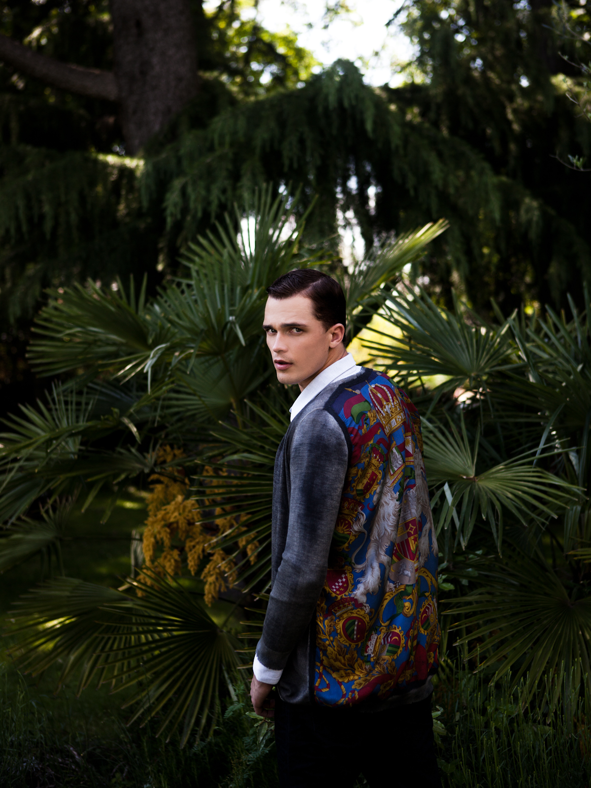 Dutty wears shirt Moschino, jumper Z Zegna, trousers Carlo Pignatelli.