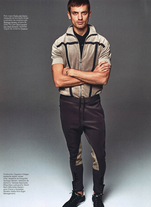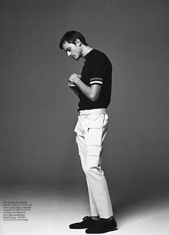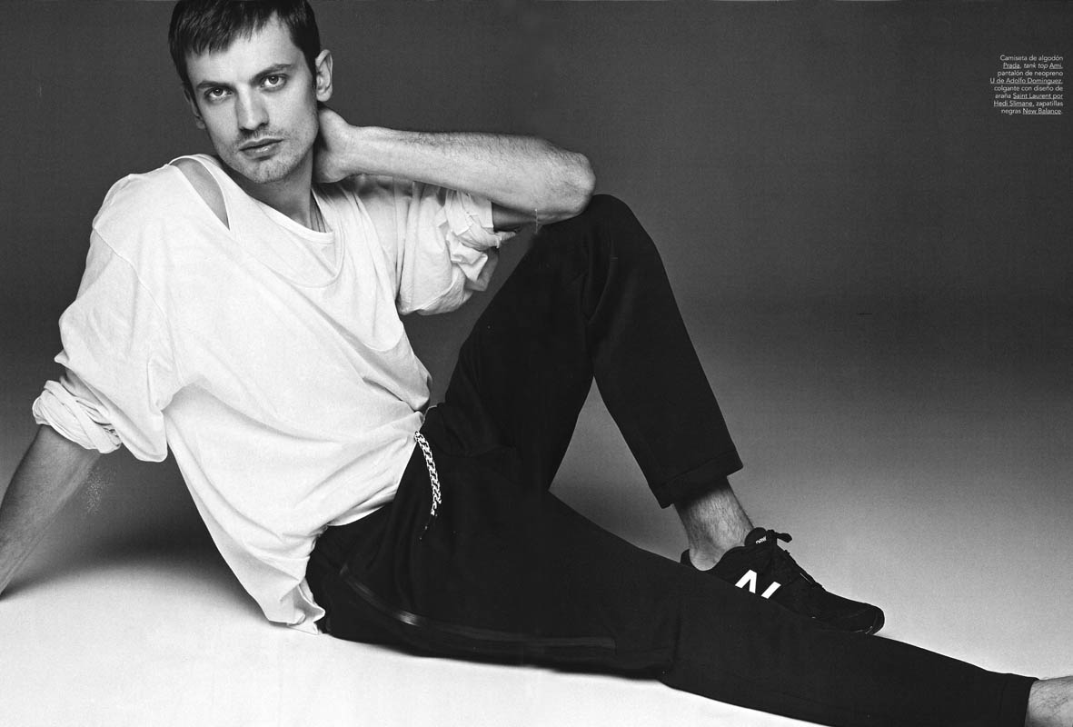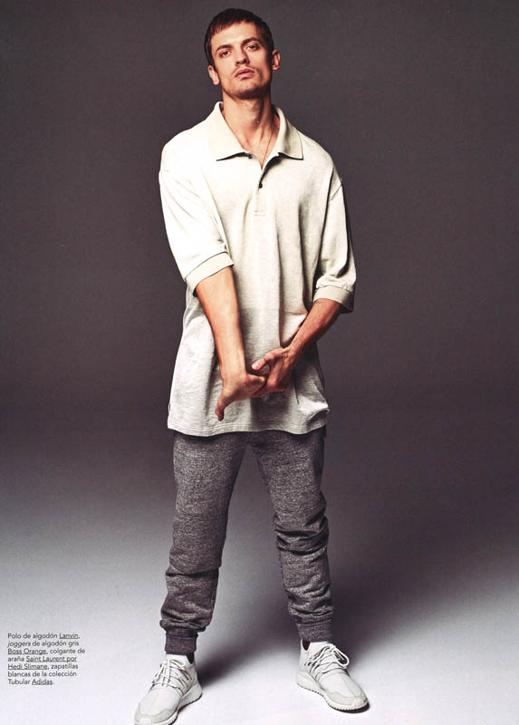 Photographer Gonzalo Machado and stylist Jesús Cicero collaborate on a casual fashion editorial for the April 2016 issue of GQ España. Embodying a casual spin on modernity, model veteran Eddie Klint (Sight Management) takes on the starring role. New essentials are front and center, showcasing current rifts on classics that range from an oversized polo shirt and refined cargo pants to Prada’s athleisure styles.