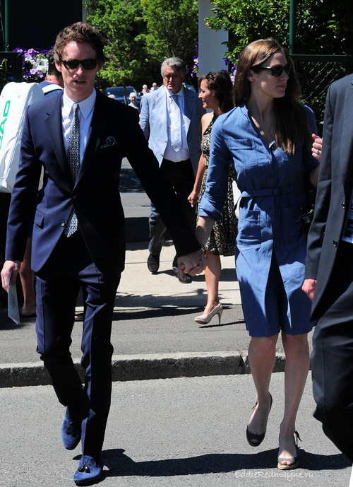 Wimbledon 2014–Les Miserables star Eddie Redmayne attended Wimbledon this past week to take in the semi-finals of the women’s tournament. Outfitted in an ensemble by Alexander McQueen, the English actor looked rather debonair in a sharp two-button navy suit and matching suede tassel slippers. However, it wasn’t just what Redmayne was wearing that had people talking—his fiancée Hannah Bagshawe was sporting the impressive diamond engagement ring given to her by the actor when he proposed last month.