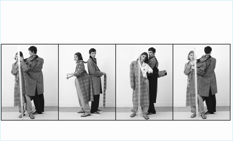 On the heels of Christopher Bailey’s final show for Burberry, Matches Fashion features the designer’s unisex spin on brand classics. Thomas Cooksey reunites with the retailer to photographer model Tancrede Scalabre in key takeaways. It’s here that stylist Simon Chilvers draws our attention to fashions with Burberry’s iconic check. The check comes in the form of outerwear, shirts, and scarves. Tapping into current trends, Bailey also applies the Burberry logo to joggers. Shop Burberry’s unisex collection on MatchesFashion.com.