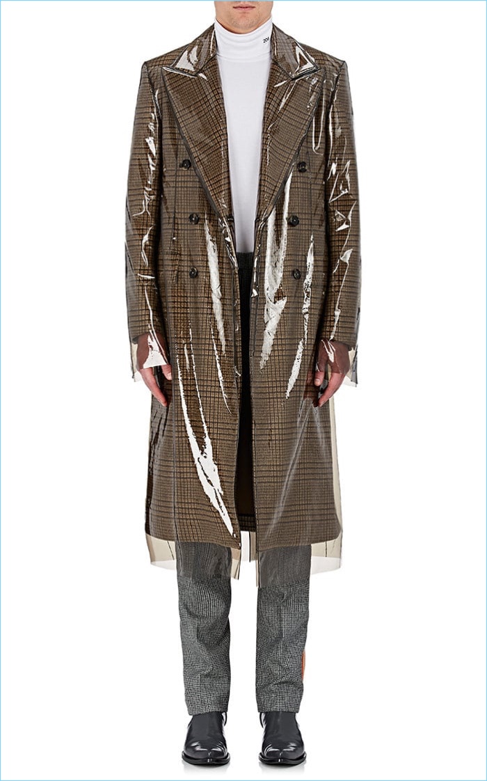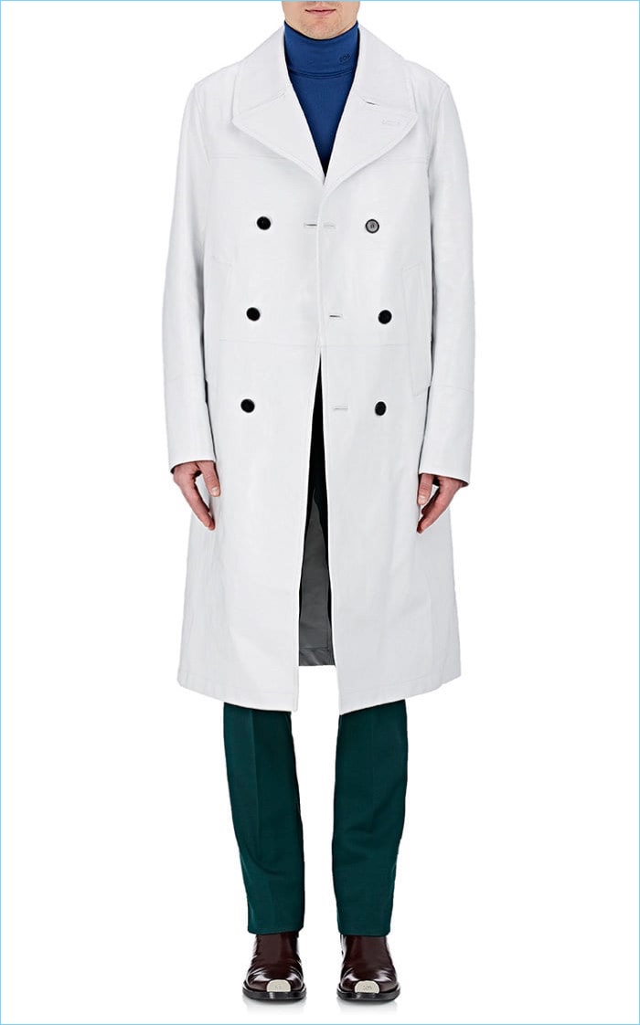 PinCalvin Klein 205W39NYC goes oversize with a leather trench coat $6,450. Barneys New York styles it with the label’s stripe-appliquéd wool trousers $850.