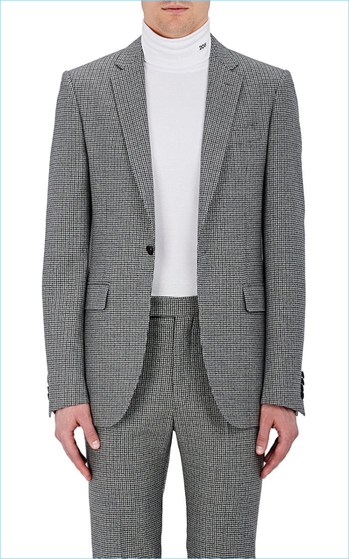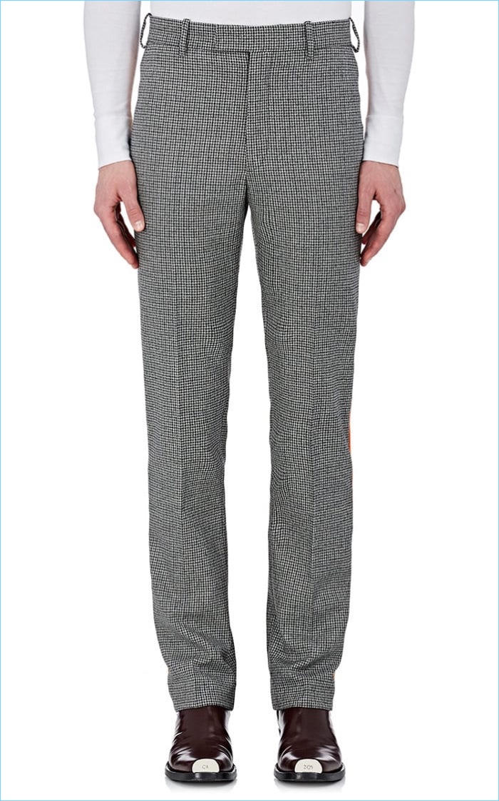PinSuit up with Calvin Klein 205W39NYC’s houndstooth sport coat $1,795 and stripe-appliquéd wool trousers $895. Add a splash of personality with Calvin Klein 205W39NYC Spazzolato leather Chelsea boots $1,095.