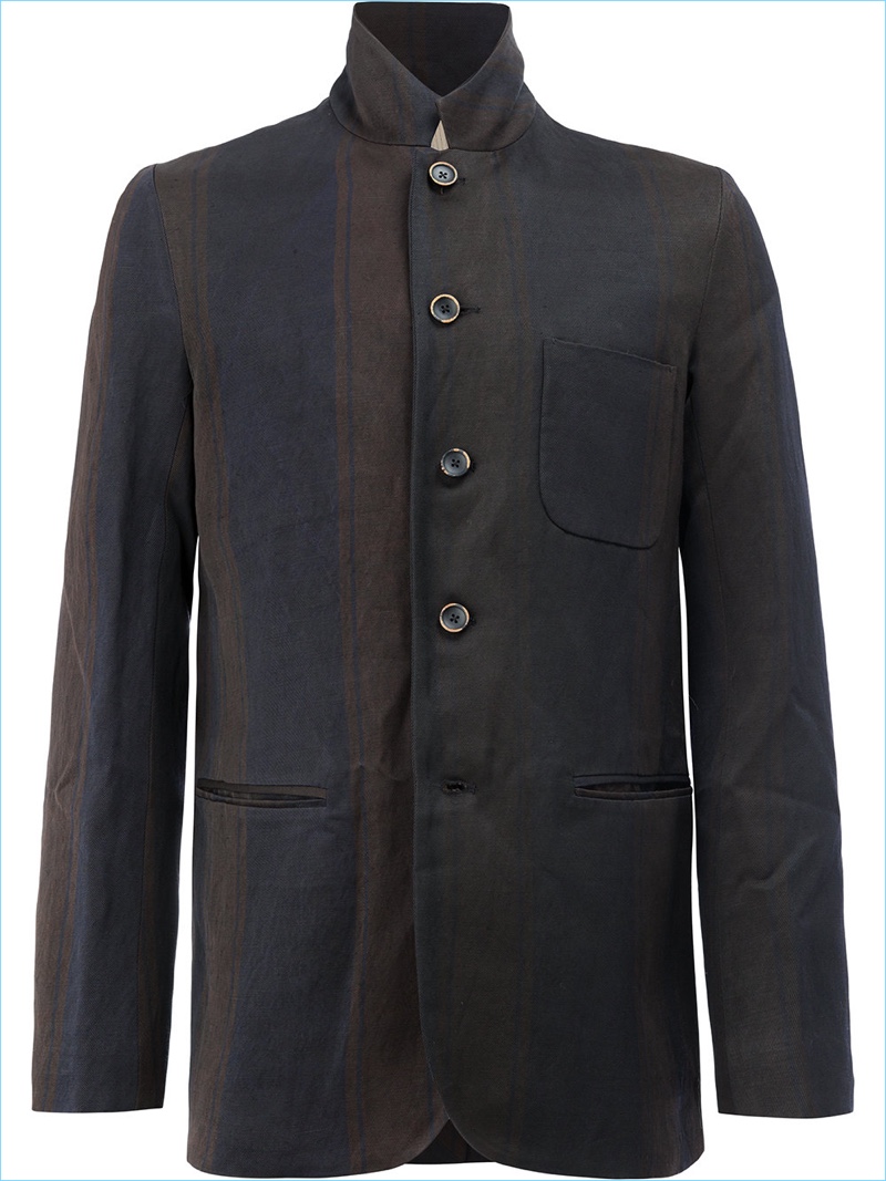 PinMaking a case for earthy hues, Josue Comoe sports an Uma Wang bomber jacket with Ziggy Chen trousers. Josue’s look is complete with an Ann Demeulemeester blazer, Gucci shirt, and Marsell boots.