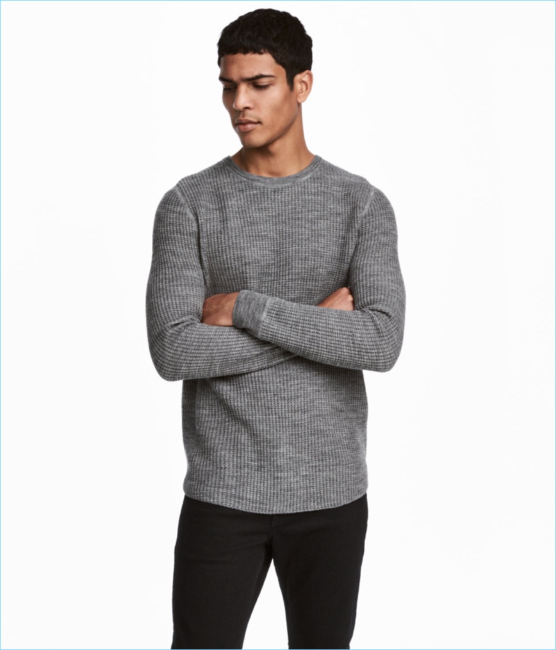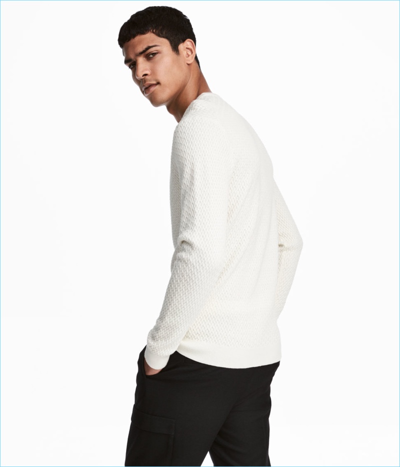 PinNew Beginnings: Elias de Poot wears a textured wool-blend sweater $34.99 and wide-cut t-shirt $14.99 from H&M.