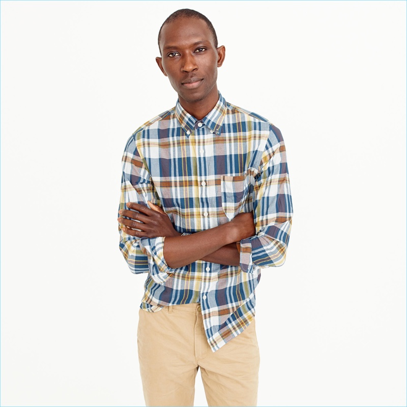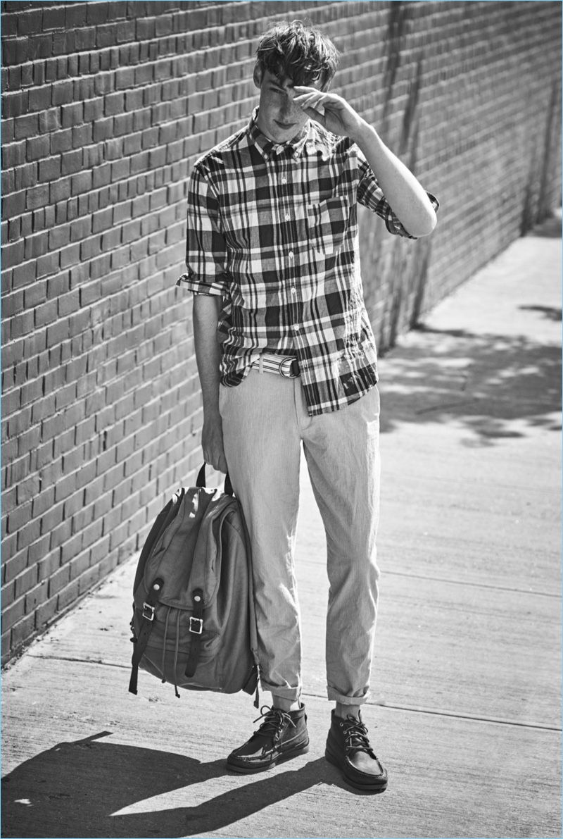 J.Crew makes the case for a backpack with its Harwick style $118. Here, Roberto Sipos models the must-have piece with a J.Crew Madras shirt $54.50 and 484 slim-fit chinos $75.