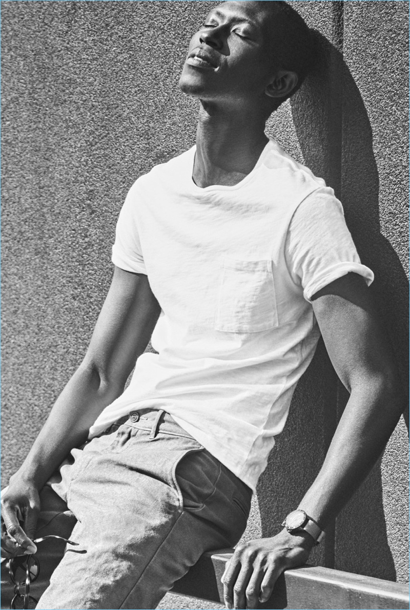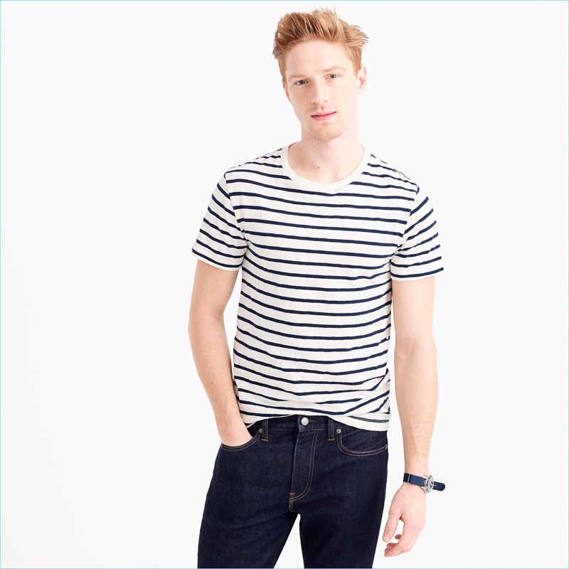 Embrace an effortless t-shirt look with J.Crew’s garment-dyed tee $39.50. Armando Cabral wears the timely essential with J.Crew garment-dyed canvas chinos $75 and New Balance for J.Crew 247 sport sneakers $100.