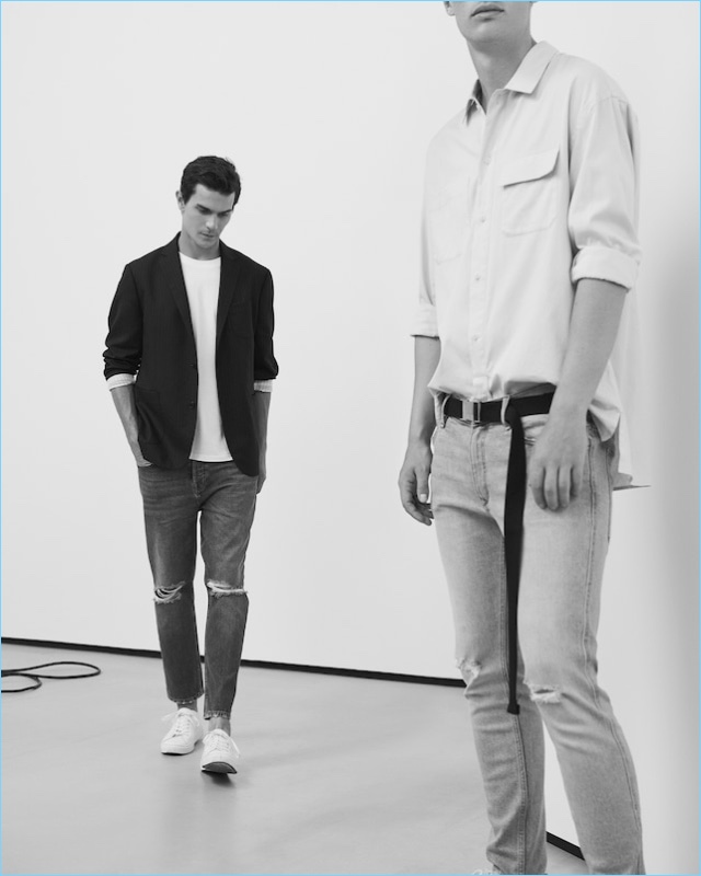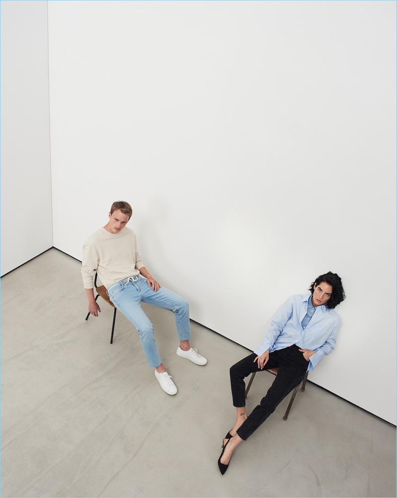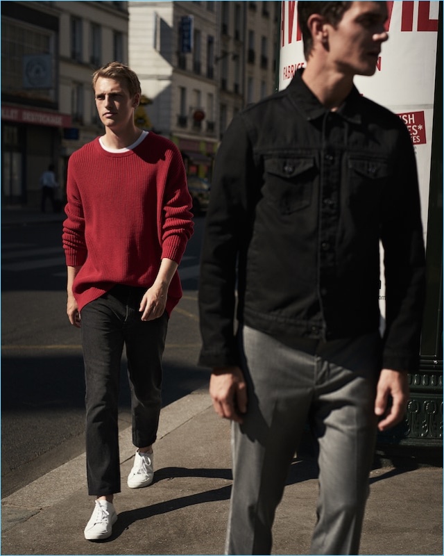 Mango Man turns a casual style page as the brand unveils a denim edit. Taking to the streets of Paris, models Vincent LaCrocq and Victor Nylander showcase relaxed staples. The duo warms up to Mango’s mix of dark and light wash denim with a nineties vibe. Cropped denim, jean jackets, and more come together with an array of laid-back tops. Sneakers and effortless pullovers also complement the shoot’s street style aesthetic.