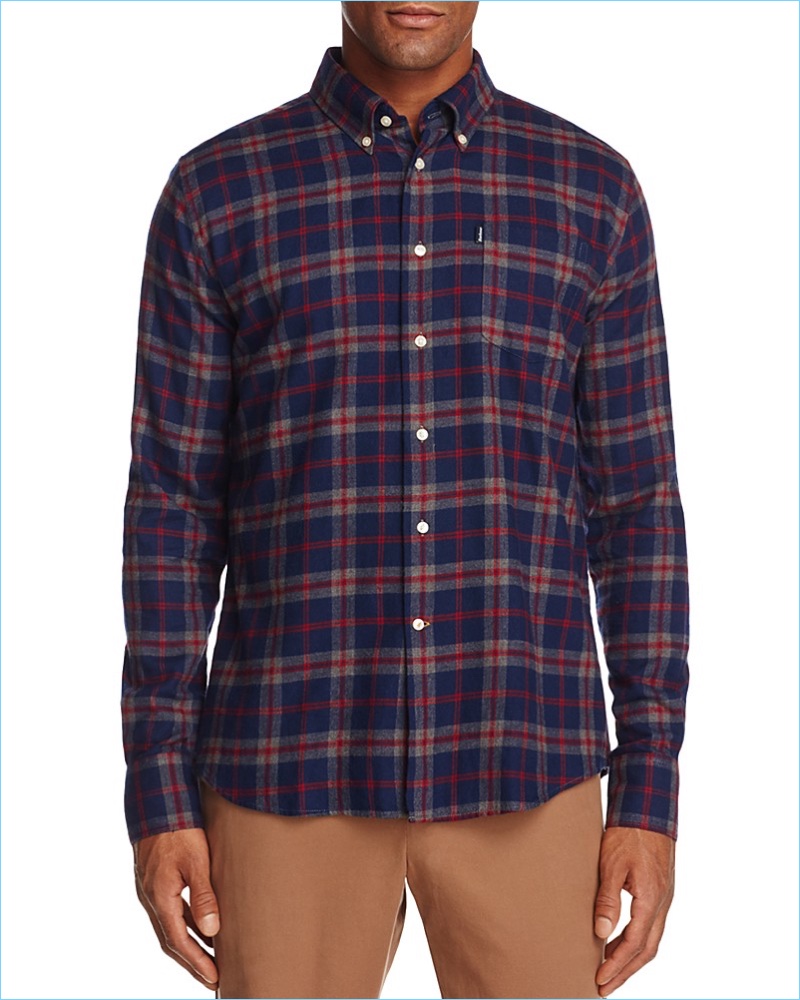 PinStyled for a Fly-fishing Trip: Rugged style reigns with this Barbour x Wood Wood waxed jacket. It goes great with Barbour’s flannel shirt and tee. Complete the look with a Herschel Supply Co. camouflage print bucket hat and STATE backpack.