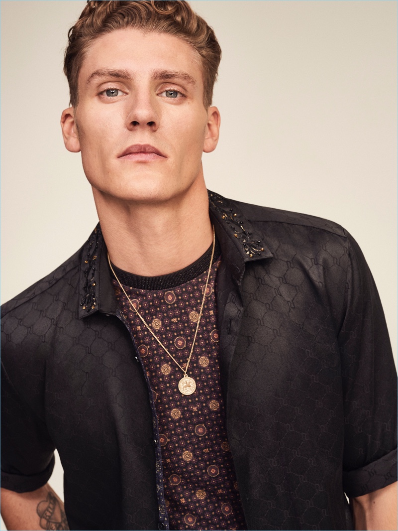 River Island celebrates thirty years with the launch of a ninety-piece capsule collection for women, men, and children. The limited-edition range takes inspiration from three decades of style. Model Mikkel Jensen reunites with the brand to showcase its men’s looks. An on-trend wardrobe takes Mikkel from a casual day to an evening partying. Key pieces range from an embroidered denim jacket and burgundy suit to a baroque print shirt. Shop River Island’s RI30 collection at RiverIsland.com.
