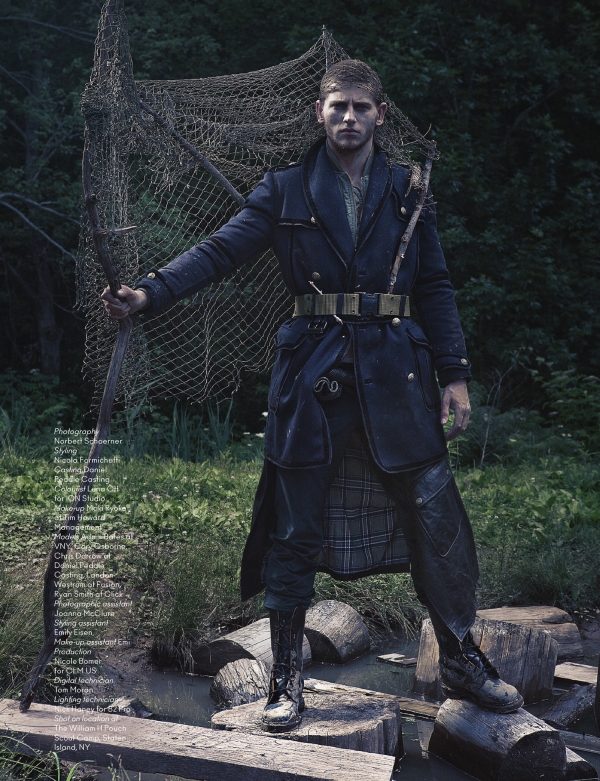Nicola Formichetti’s recent work for AnOther Man magazine follows a military theme that results in a hyper masculine style that is different from previous work that is more receptive of gender-pushing styling. However, the editorial succeeds in providing a fresh perspective for several labels including Margaret Howell, Prada and Marc Jacobs. Photographed by Norbert Schoerner, the editorial features Adam Bates, Cory Osborne, Chris Darrow, Landon Westrom and Ryan Smith.
