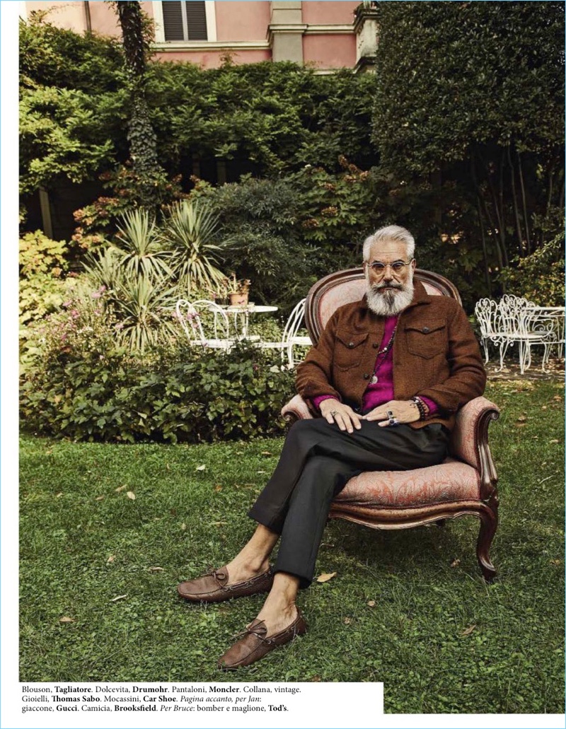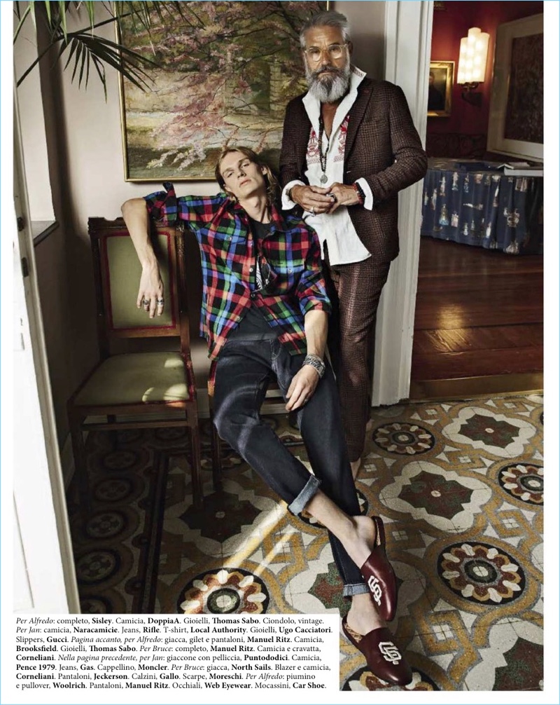 Enlisting models of varying ages, Vanity Fair Italia stages a family affair for its October 2018 issue. The special edition also serves as an issue dedicated to men’s fashion. Models Bruce Machado, Alfredo Sacchi, and Jan Fladenhofer come together the occasion. Pina Gandolfi styles the models, while photographer Paolo Leone captures the outing. Bringing a charming sense of eclecticism to the story, Gandolfi pulls together various brands with a strong point of view. Prints and styles playfully clash with labels like Paul Smith, Tagliatore, and Gucci along for the ride.