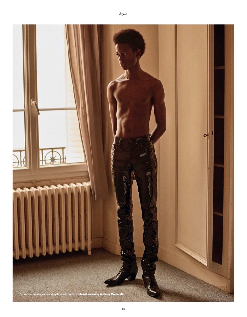 Esquire Singapore approaches its February 2019 issue with a feature on Saint Laurent. The Parisian label is front and center for an editorial lensed by photographer Chuck Reyes. Embracing a rock ‘n’ roll attitude, models Chun Soot, Yacine Keita, and Magnus Østergaard come together. The trio wears Saint Laurent looks styled by Jonathan Ailwood. Statement outfits include sequined jeans, suit jackets, and deconstructed shirting.