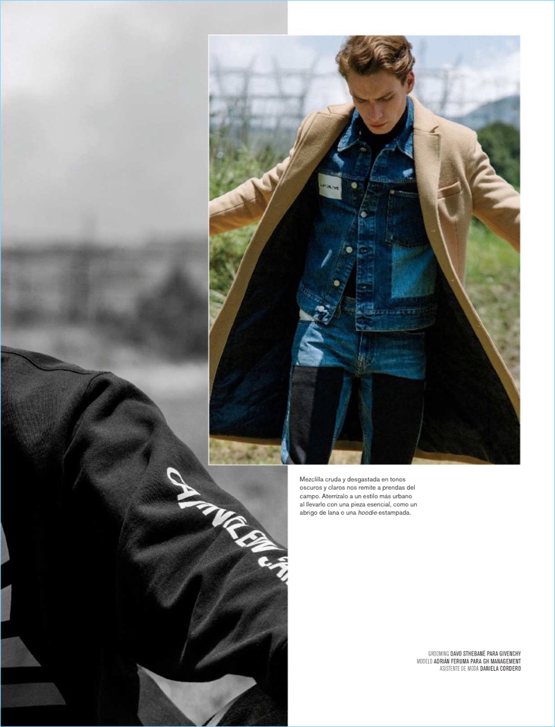 Raf Simons’ interpretation of Americana style meets Twin Peaks-inspired references for Calvin Klein Jeans’ fall-winter 2018 collection. Select pieces from the lineup enjoy the spotlight in a new editorial. Life & Style México goes casual with the brand for its September 2018 issue. Model Adrian Feruma stars in the outing. He appears before photographer Manuel Zuniga for the occasion. Meanwhile, Celeste Anzures styles Adrian in Calvin Klein Jeans denim and logo-adorned fashions.