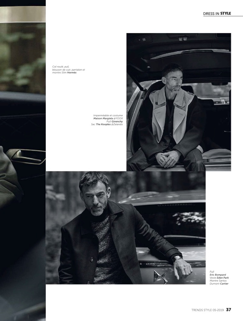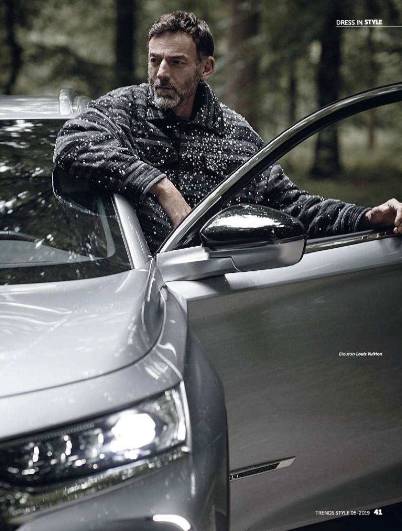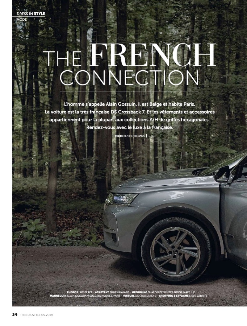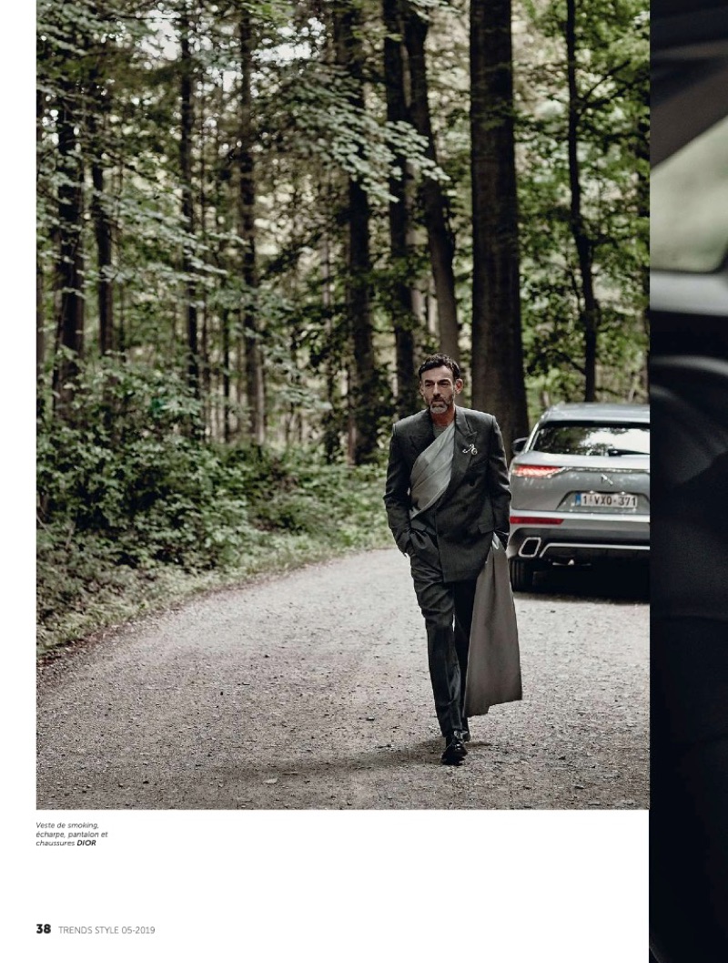 Alain Gossuin covers the most recent issue of Trends Style. Photographer Luc Praet captures the Belgian model for the editorial outing. A luxurious vision, Alain takes a seat in a DS 7 Crossback. Easing into fall, Alain charms in sophisticated wardrobe essentials. Stylist Lieve Gerrits curates the sharp lineup. Front and center, Alain dons menswear from brands like Saint Laurent, Balmain, and Louis Vuitton.