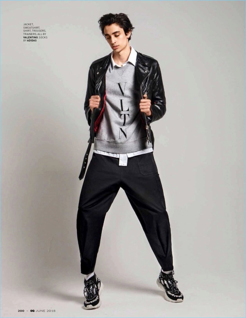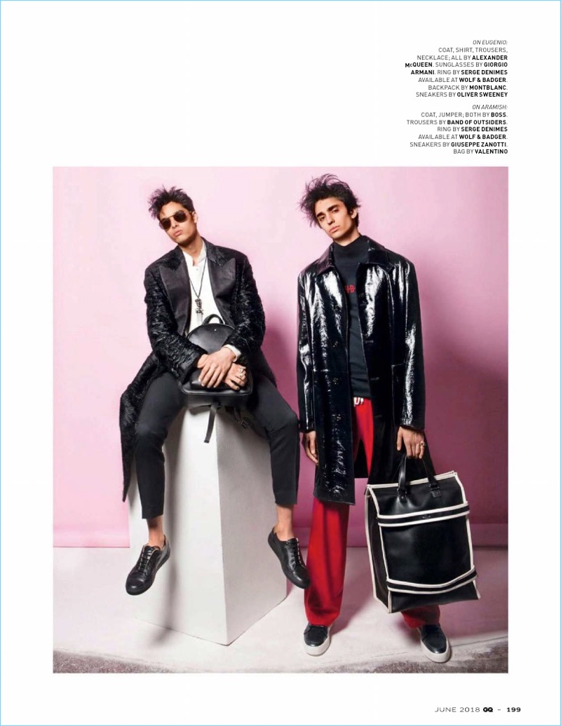Fine tailoring and sports-luxe fashions come together for GQ India’s June 2018 issue. Models Aramish Mangi and Eugenio Nakakawa star in an editorial. The pair takes to the studio for photos by Tibi Clenci. Sporty fashions collide with their formal opposites for the outing. It’s here that stylist Ravneet Channa features brands like Dsquared2, Tom Ford, and Band of Outsiders.