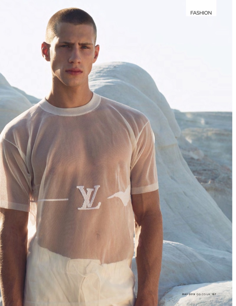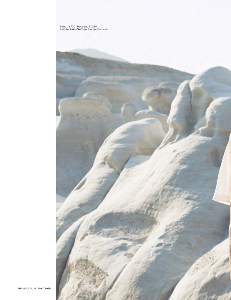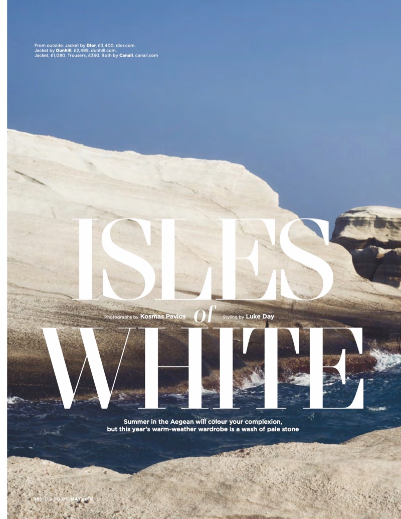 British GQ makes a case for summer whites with a new editorial from its May 2019 issue. The magazine enlists photographer Kosmas Pavlos to work with stylist Luke Day. Model Augusta Alexander is front and center for the outing. Taking to the coast of the Aegean sea, Augusta dons chic designer looks. Light tailoring steals the scene with featured brands such as Giorgio Armani and Hermès.