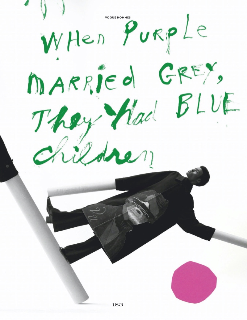Duane Michals brings a fresh attitude to the pages of Vogue Hommes Paris with photography and illustrations. Models Babacar N’doye, Fernando Lindez, and Parker Van Noord take to the studio for the story’s fun images. Sporting a black wardrobe, the trio is styled by Anastasia Barbieri. Parker, Babacar, and Fernando rock statement looks, showcasing fashions from brands like Saint Laurent, Berluti, and Bottega Veneta.