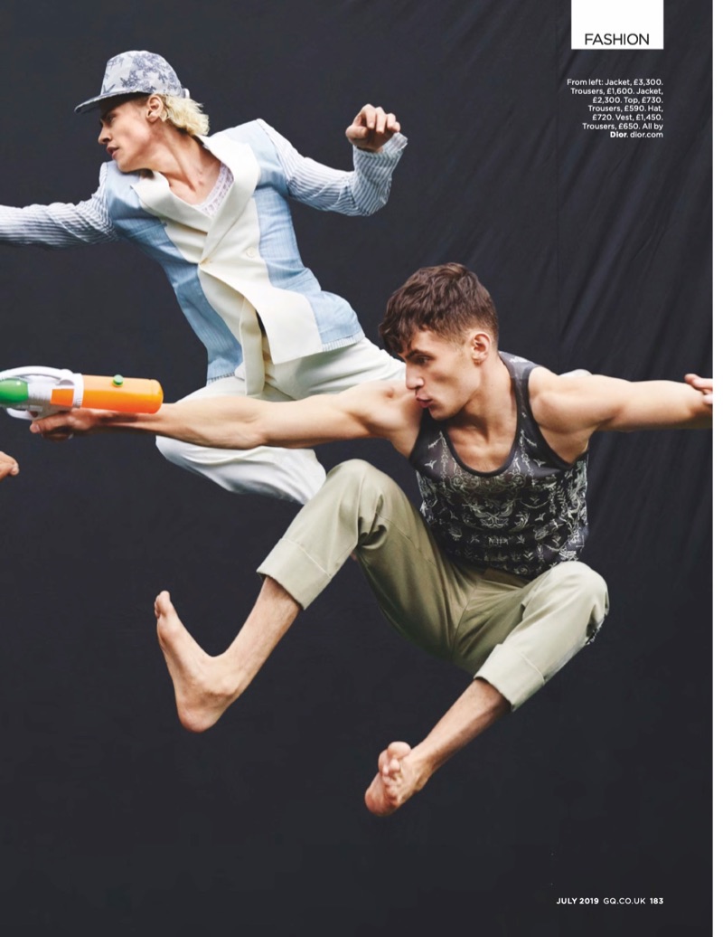 British GQ delivers a stylish summer of fun with its July 2019 issue. The magazine takes us poolside for a lively suiting story. Models Oliver Stummvoll, Emin Akyildiz, and Jonas Barros come together as a dynamic trio. The models deliver endless personality as they pose for the lens of Cameron McNee. Tasked with styling the fashion shoot, Tony Cook provides easy inspiration. Cook curates a wardrobe with sharp suits and bold patterned clothing. Featured brands range from Valentino and Corneliani to BOSS.