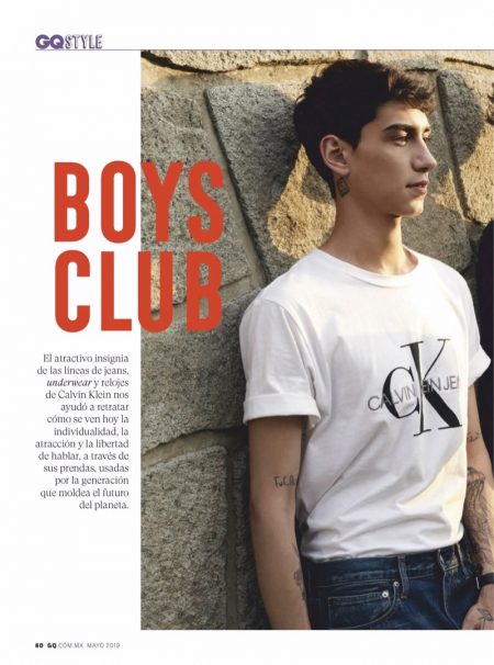 It’s a “Boys Club” as GQ México features spring essentials from Calvin Klein Jeans. Joining Sydney Sylvester, models Chris Pantoja, Aaron Pellegrino, Nicolas Palloto, and Genaro Scrocca join the gang. Embracing a young attitude, the models take to a basketball court. The models sport denim and logo tees styled by Marco Cuevas. Meanwhile, photographer Santiago Ruiseñor captures the story.