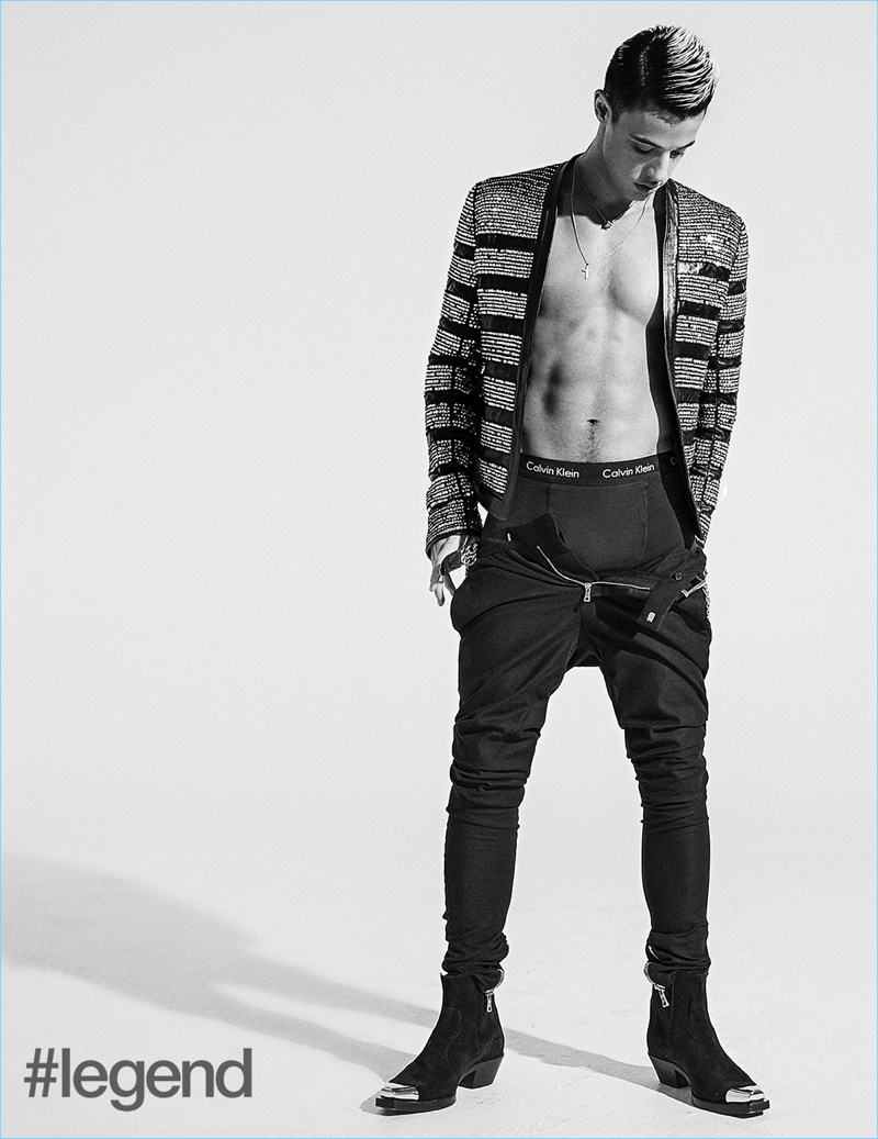 One of Dolce & Gabbana’s latest campaign stars, Cameron Dallas is once again in the spotlight. This time around the influencer and model covers #legend. Donning eclectic style for the feature, Cameron poses for photographer Mike Rosenthal. The American model also shows off his bleached blond tips. Meanwhile, stylist Paris Libby spotlights a host of aesthetics. Front and center, Cameron wears brands like Balmain, Tom Ford, and POLO Ralph Lauren.