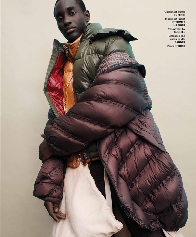 Model Charles Oduro is “On a Cloud” with a winter editorial focused on puffer jackets. The model thinks big as he connects with stylist Paul Frederick (See Management). Embracing covetable jackets and coats from a myriad of designers, Charles is photographed by Alex John Beck for Essential Homme’s winter 2018 issue. He sports key outerwear from the likes of Givenchy, Fendi, and Versace. Meanwhile, grooming is completed by artist Matthew Tuozzoli (See Management).