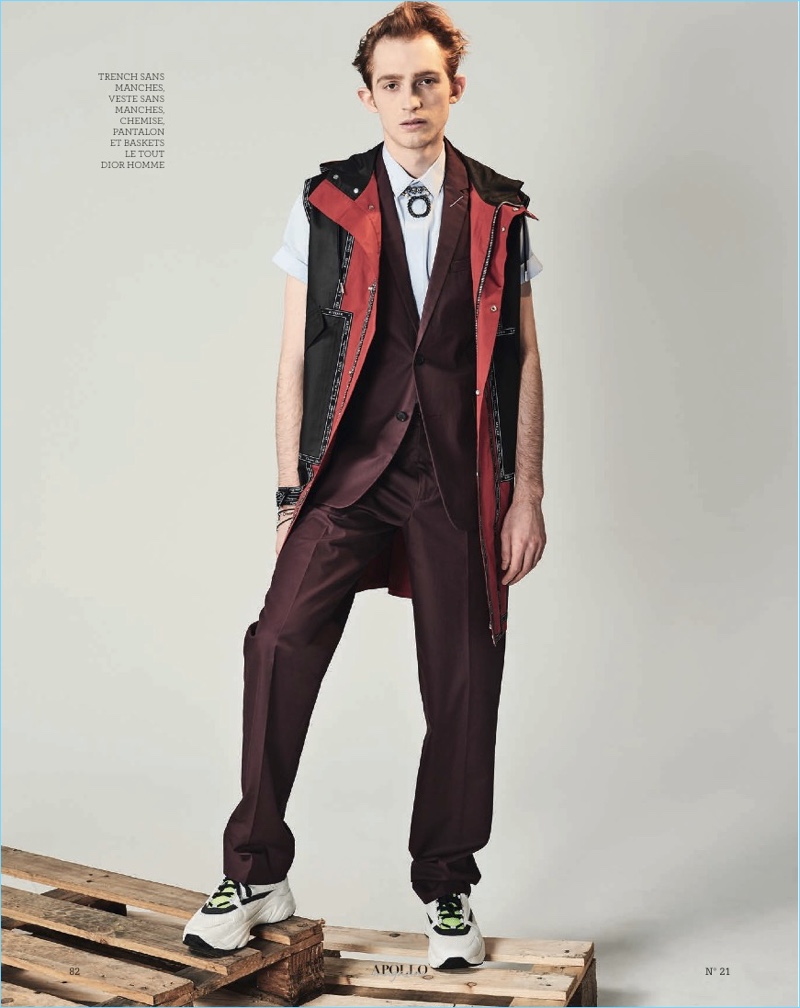 Charlie Ayres-Taylor is ready for summer as he appears in a new story. The red-haired model graces the pages of Apollo’s May 2018 issue. Taking to the studio, Charlie connects with photographer Florian Renner. It’s here that stylist Suzie Street pulls together a sleek selection from the spring-summer 2018 collections. Embracing light hues, Charlie sports the latest from brands like Canali, Dior Homme, and Paul Smith.