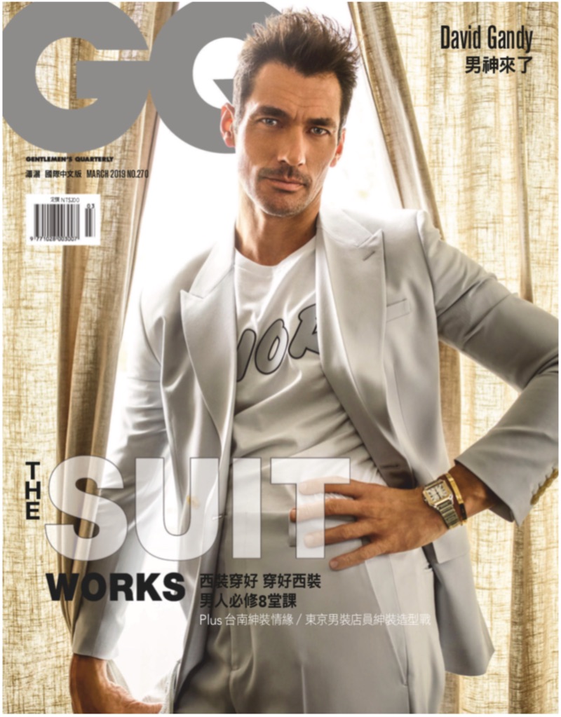 David Gandy returns to the pages of GQ Taiwan for the magazine’s March 2019 issue. The British model reunites with Chiun-Kai Shih, who produced the shoot, but captured the model for the magazine in 2014. Donning sharp spring suits for GQ Taiwan’s new cover shoot, David links up with stylist Jim Moore. Meanwhile, Peggy Sirota photographs the top model in brands such as Dior Men, Hermès, and Ralph Lauren.