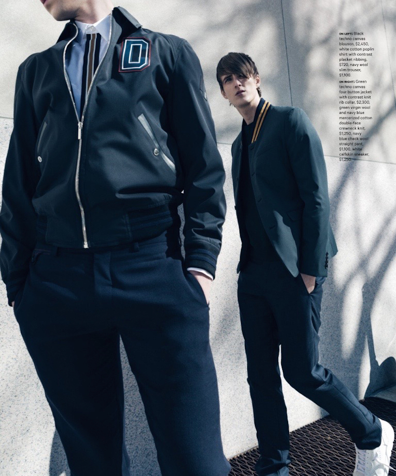 Essential Homme puts the spotlight on Dior Homme for its most recent issue. The collegiate-inspired designs of Dior Homme creative director Kris Van Assche are front and center for the fall-winter 2015 outing. Models James Smith and Race Imboden come together with edgy hairstyles for a fashion spread, lensed by photographer Cyrill Matter. Styled by Terry Lu, James and Race head outdoors in tartans, denim, tweeds and leather.