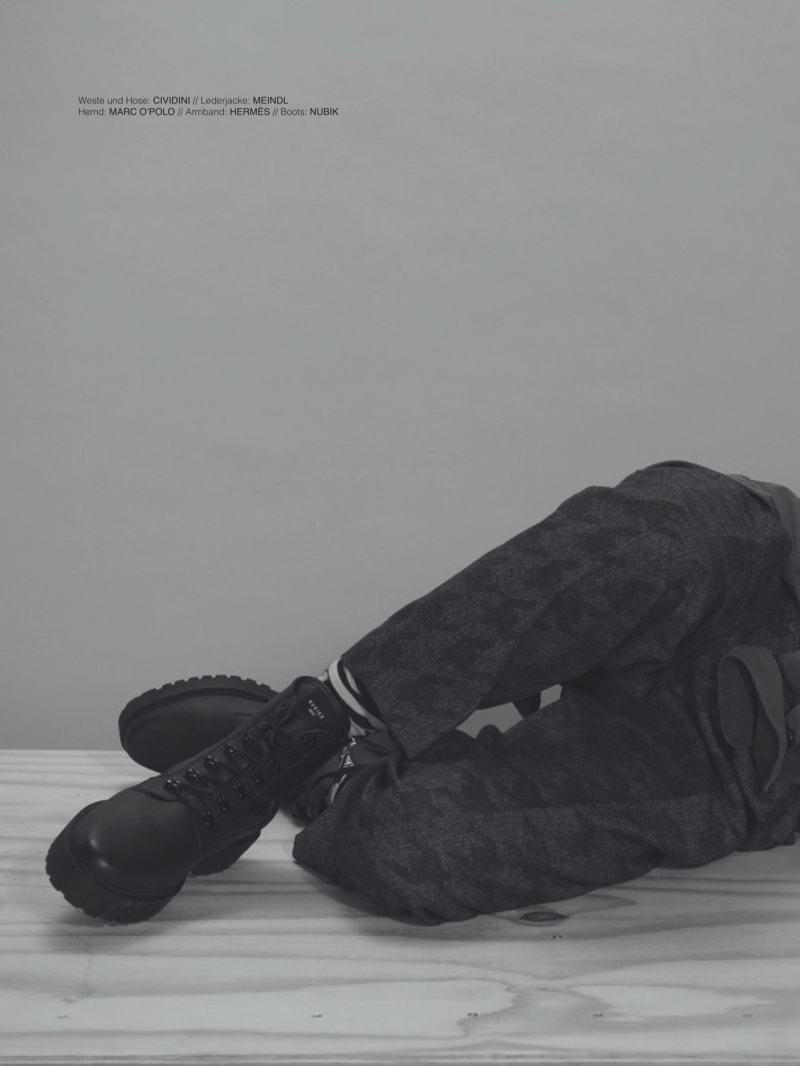 Eugen Bauder helps take Approved into the new year as its latest cover star. The model turned actor connects with the magazine for its December 2019-February 2020 issue. Oliver Rauh not only photographs Eugen for the feature, but styles him as well. Taking to a studio for portraits, Eugen sports a contemporary wardrobe with varied styles. Rauh outfits the Findher actor in everything from a leather trench to a sharply tailored suit. Eugen’s wardrobe includes brands such as Hermès, Dries Van Noten, and Belstaff.