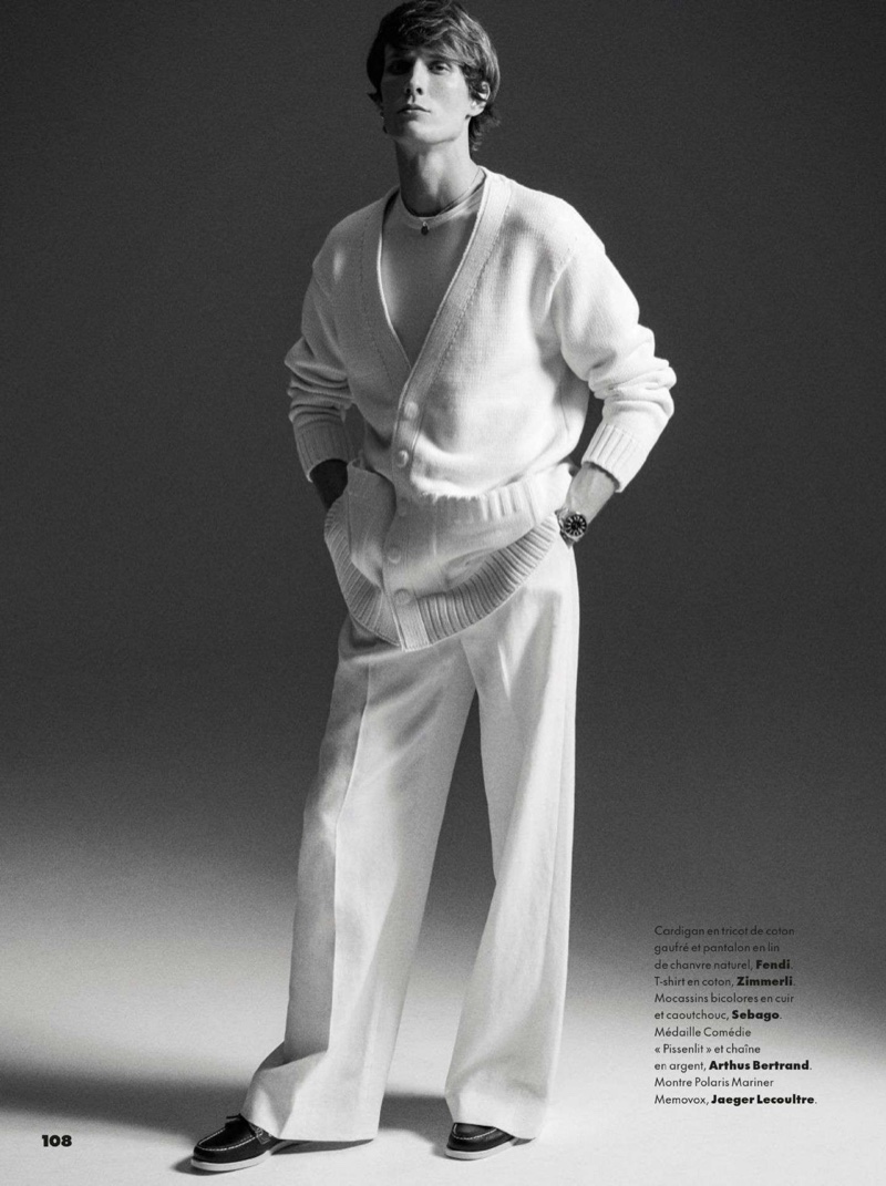 Felix Gesnouin tackles a chic new spring wardrobe for a GQ France story. Front and center, the top model appears before the lens of photographer Pablo Freda. Freda captures Felix in a mix of color and black and white images. A bright set envelops Felix as he dons a wardrobe styled by Azza Yousif. Standing tall or posing against various furniture from set designer David de Quevedo, Felix inspires in soft tailoring. The French model dons sleek shirts, trousers, jackets, and more. Ultimately, the fashion editorial delivers style inspiration for the sophisticated palette with fashion brands such as Dsquared2, Fendi, Saint Laurent, and Givenchy.