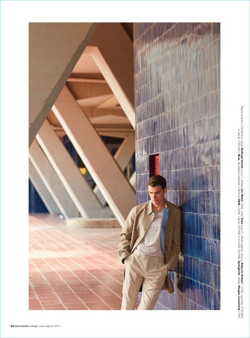Filip Wolfe charms with a timely story from Men’s Health Portugal. Embracing a wardrobe of neutral hues, Filip stars in an editorial for the magazine’s July/August 2017 issue. The outing pairs Filip with photographer Edu García. Heading outdoors for a pleasant day, Filip makes a case for must-have styles from the likes of Bottega Veneta and BOSS.