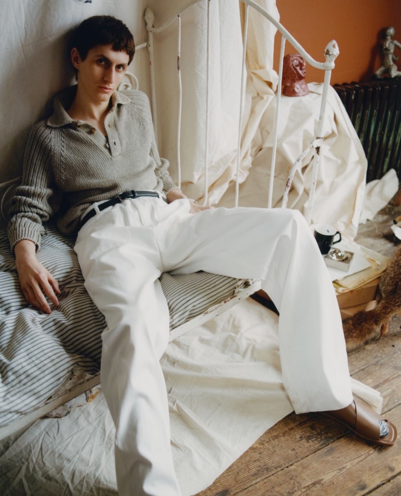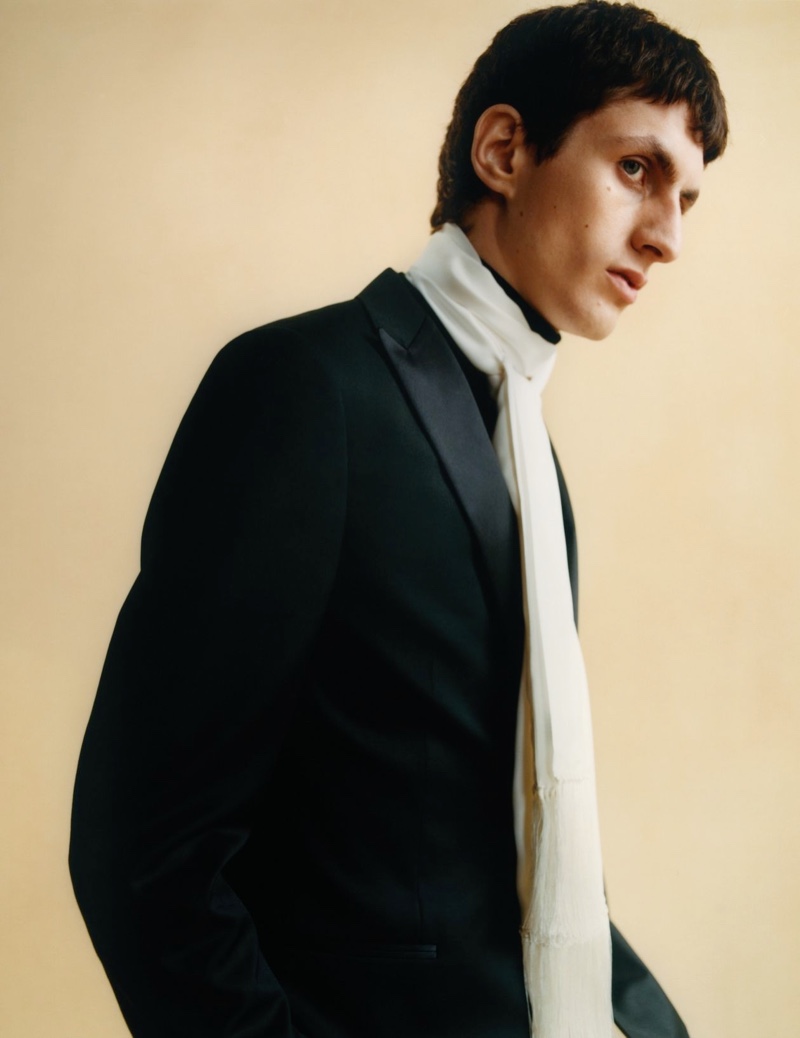 WSJ. Magazine releases its spring men’s style issue and suits land in the spotlight. However, the magazine addresses a post-COVID trend for more relaxed fashions. A story entitled “How to Wear a Suit Like a Work of Art–Even at Home” deconstructs the modern suit. Stylist Max Clark works his magic as he styles model Henry Kitcher for the occasion. Front and center, Henry poses for the lens of photographer Eddie Wrey. The latter turns up the contrast and exposure for dreamy photos. Meanwhile, Henry inspires in elegant looks, incorporating pieces from brands like Michael Kors, Giorgio Armani, Balenciaga, Valentino, and Givenchy.