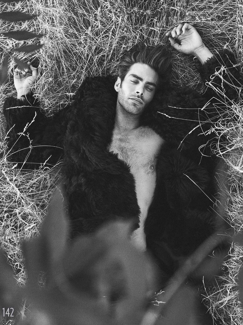Jon Kortajarena is ready for his close-up as he appears in a story lensed by photographer Olivier Yoan. Stylist Hannah Beck outfits the top model in a designer wardrobe, which features brands such as Louis Vuitton and Dolce & Gabbana. Venturing outdoors, Jon poses in a make-shift studio. He dons tailored jackets, knit sweaters, trim trousers, and more.