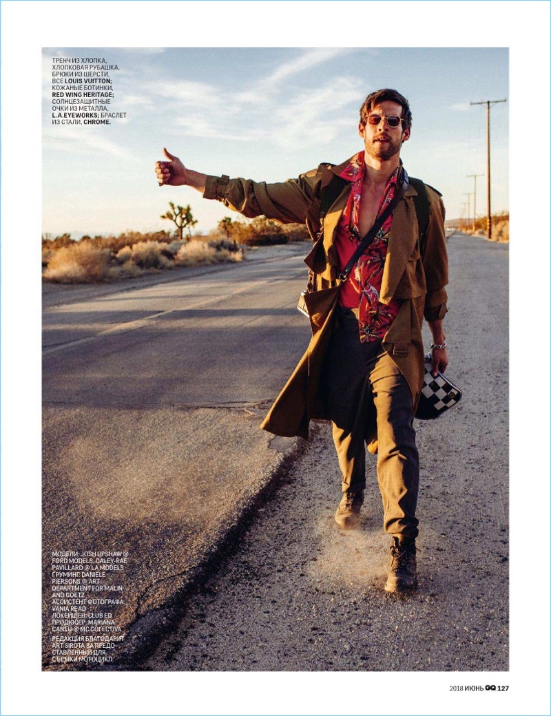 Josh Upshaw embodies an effortless cool as he appears in a story for GQ Russia. He couples up with Caley-Rae Pavillard for the editorial. Appearing in the magazine’s June 2018 issue, Josh is photographed by Ivan Bideac. Meanwhile, fresh spring-summer 2018 looks come together, courtesy of stylist Taylor Brechtel. Taking to the open road, Josh wears biker jackets, distressed denim, and more. His wardrobe includes brands such as Dior Homme, Calvin Klein Jeans, and Dolce & Gabbana.