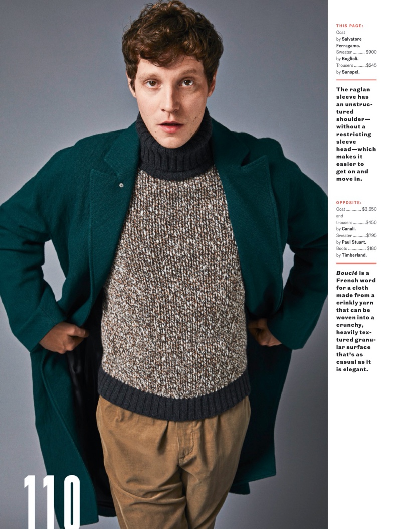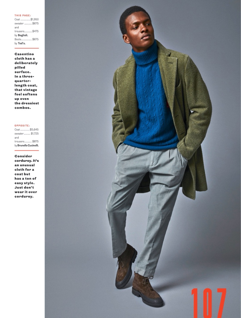Esquire embraces “The Power of 3” with its November 2019 issue. Stylist Nick Sullivan proposes the core wardrobe essentials of coats, knitwear, and pants for winter. Taking to the studio, models Matthew Hitt and Jubril Oyedeji come together. Posing against a gray backdrop, the models pose for the lens of photographer Aaron Richter. They sport chic coats and more from the likes of Boglioli, Brunello Cucinelli, and Michael Kors.