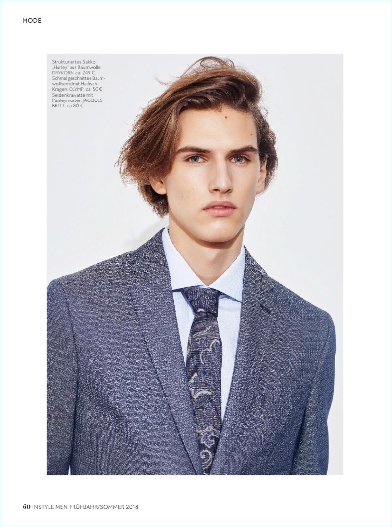 Fresh face Otto H. suits up for the spring edition of InStyle Men Germany. The Elite Amsterdam model connects with photography duo Petrovsky & Ramone for the occasion. Taking to the studio, he rocks a variety of playful spins on the traditional suit. Stylist Theresa Pichler doe not disappoint in the label department. She pulls together brands such as Cerruti 1881 and Brunello Cucinelli.