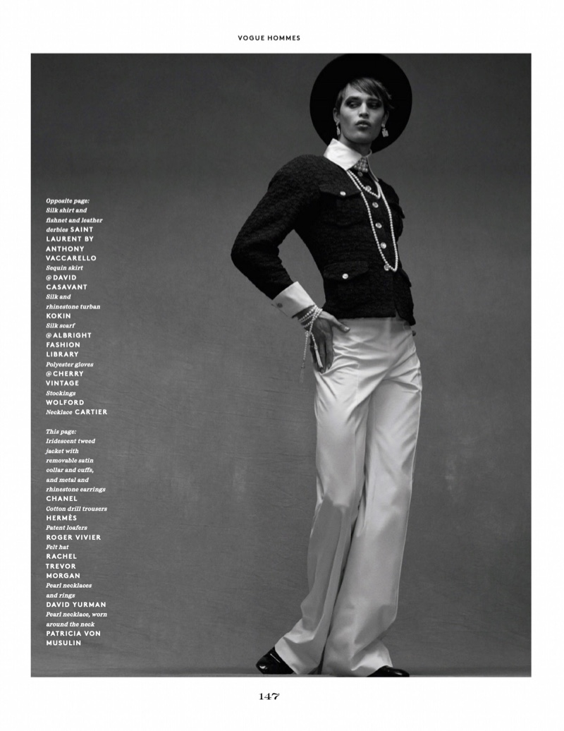 A constant style chameleon when it comes to Vogue Hommes Paris’ pages, Parker van Noord reunites with the magazine for spring 2021. Parker peacocks his way through a flamboyant story lensed by photographer Ethan James Green. A minimal studio set and the imperfect outdoors create a nice contrast as Green lets Parker’s attitude drive the editorial. Green turns up the lights as Parker models bold looks styled by Anastasia Barbieri. The top model is a head-turner in luxury labels such as Versace, Lanvin, Saint Laurent, and Chanel.